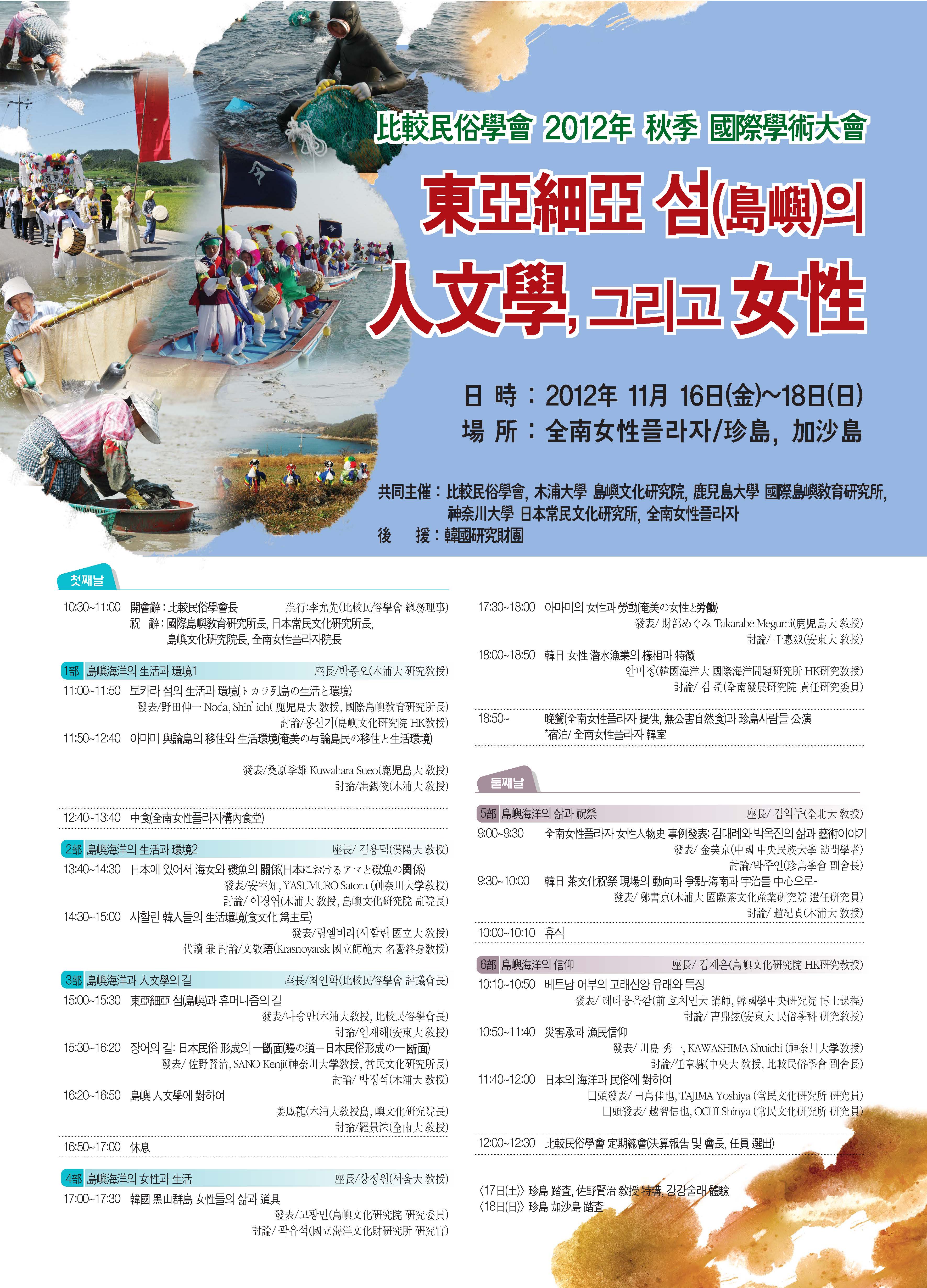 共同主催: 比較民俗學會, 木浦大島嶼文化硏究院, 全南女性플라자